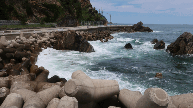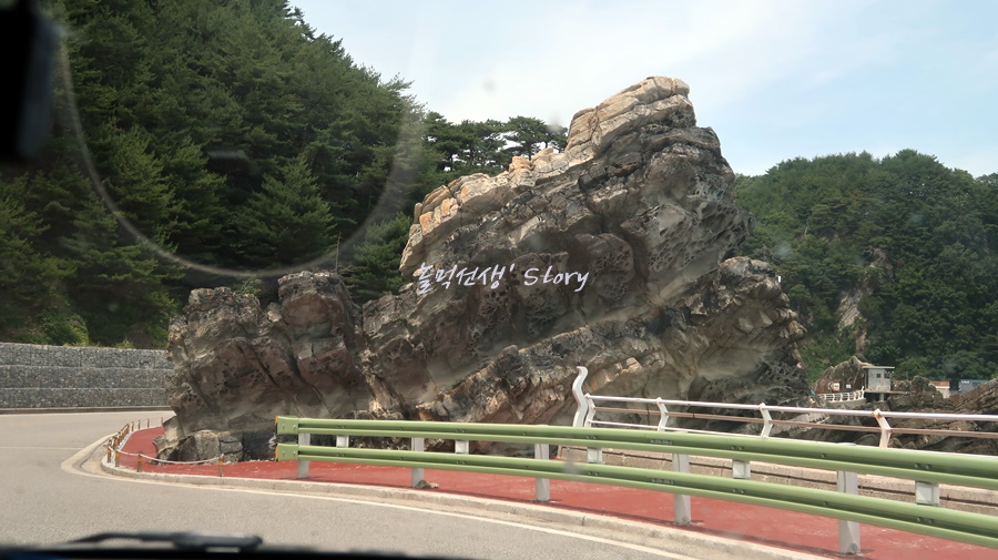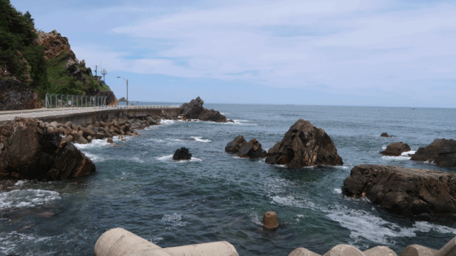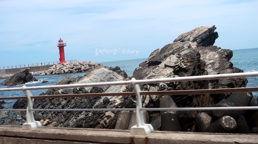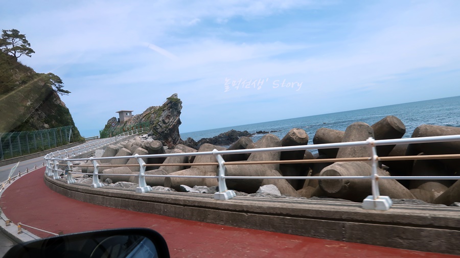 여러 기암괴석과 파도치는 동해바다를 지척에서 느끼며 드라이브 할 수 있는 곳이기에 삼척 해안도로와 함께 제가 좋아하는 곳이기도 합니다. 중간에 금진항에 먼저 들리게 되는데 항구에 낚시금지라는 팻말이 붙어있고 줄까지 쳐있는데도