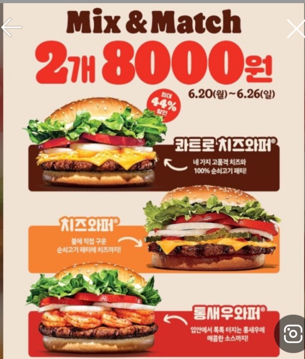 6월 20일부터 25일까지 버거킹 와퍼 2개 8천 원 행사