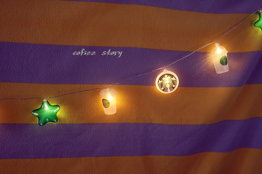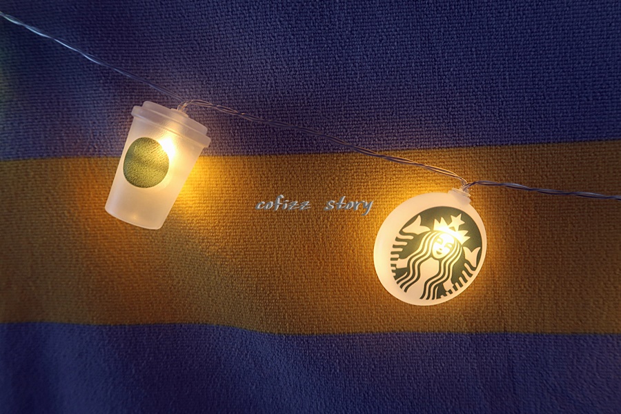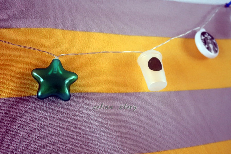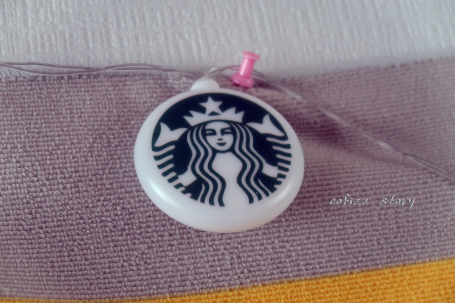 스타벅스 사이렌 언니가 프린트된 메달과 별 모양 컵 모양 등 모빌이 12개 정도 달려있고 길이도 생각보다 제법 된다. 불이 들어오긴 전엔 조금 허접해 보이긴 하지만 ^^ 그리고 사이렌 로고가 잘 벗겨질 것 같은 느낌이긴 하지만 일단 불을 켜 보도록 하죠