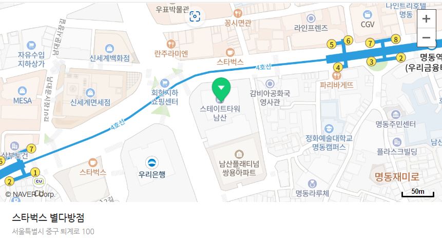 명동역 바로 근처는 아니고 신세계 백화점에서 명동쪽으로 건너편 남산 스테이트 타워 1층에 위치하고 있고