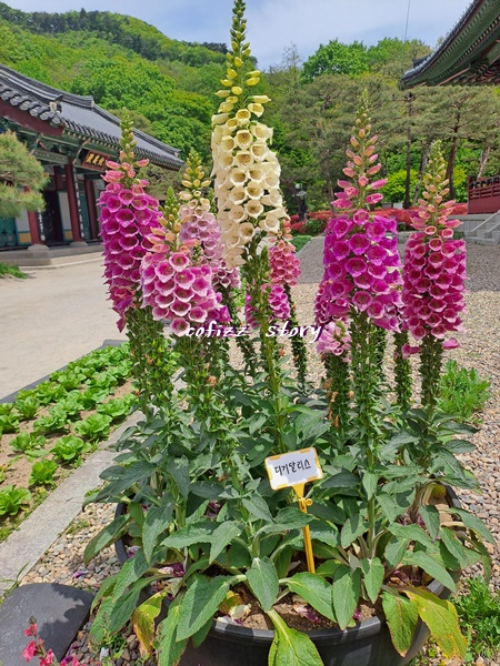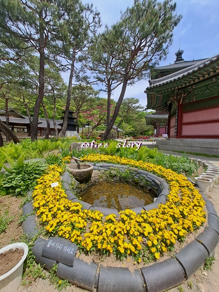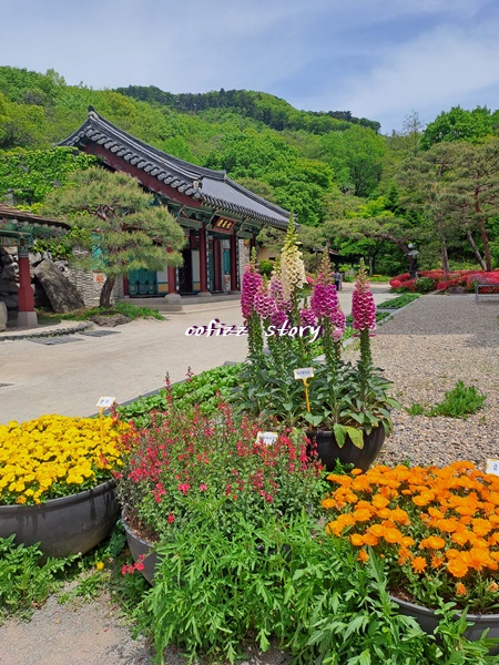사찰에 들어서자마자 아기자기한 꽃들이 눈에 들어오는데요 각각의 화려함을 자랑하는 꽃들은 방문객들을 위한 배려로 각자 이름표까지 꽂혀 있어서 더욱더 보는 재미가 있어요. 아따 꽃밭이라고 벌들이 어찌나 많던지 말입니다 ㅎㅎ