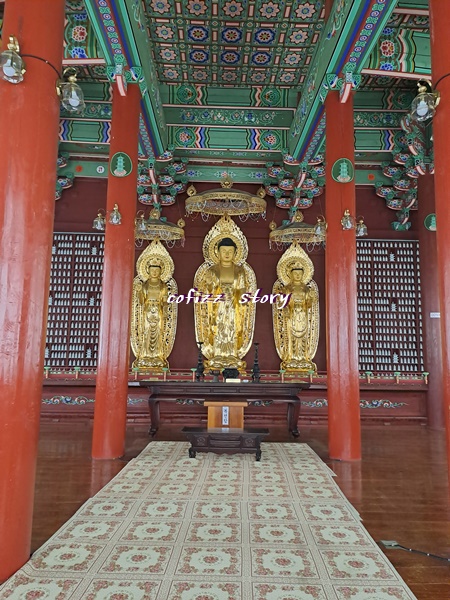 1층에 들어서면 이곳은 대웅전으로 특히하게 4개의 면을 돌아가며 불상을 마주할 수 있습니다.