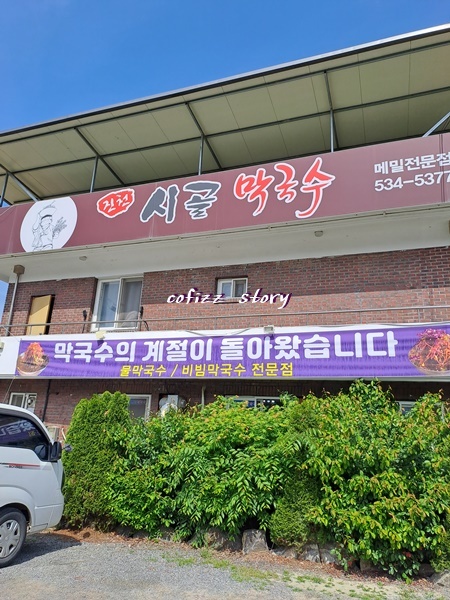 그나마 근거리에 있는 시골 막국수 집에서 점심을 먹기로 합니다.