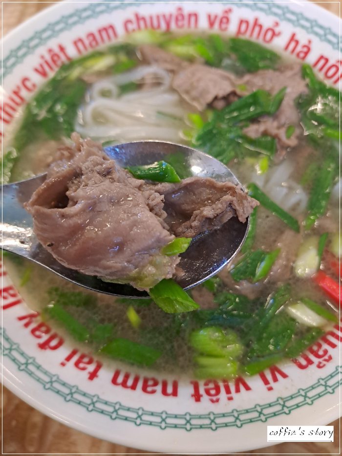 먼저 국물을 한 수저 떠서 먹어 봅니다. 오 한국에서 먹는 쌀국수의 전형적인 그 공장표 같은 획일적인 맛이 아니라