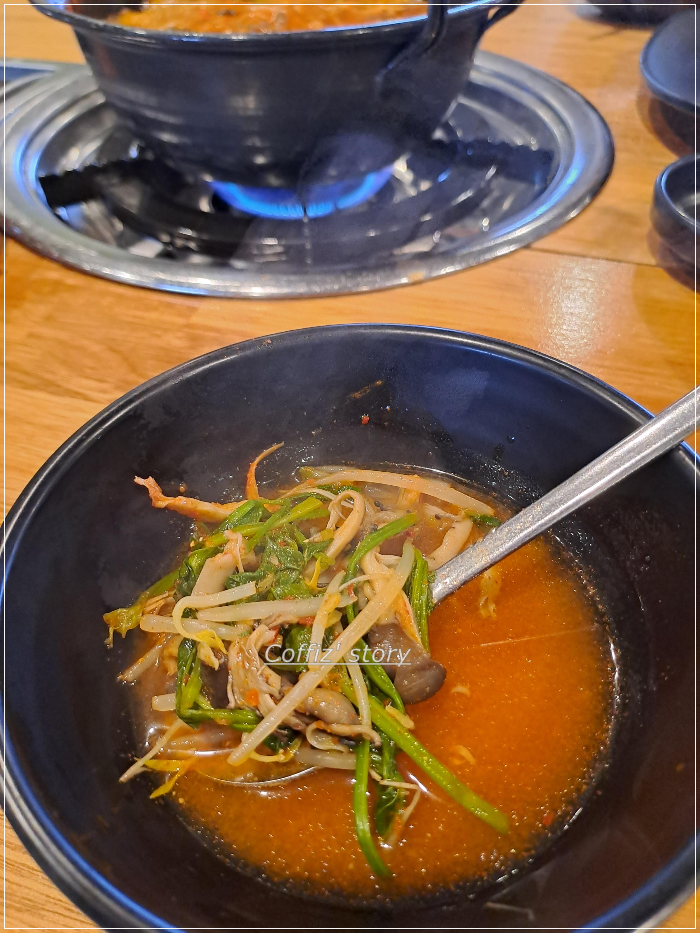 얼큰한 국물에 고기랑 버섯 미나리 숙주까지 건져 먹기~ 정말 오송 맛집 맞습니다. 요즘 면요리도 만원을 넘어가는데 이렇게 만원 한 장으로 배불리 먹기 쉽지 않죠 ^^