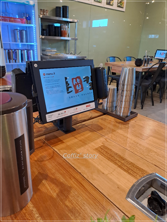내부 인테리어 분위기는 그냥 깔끔한 느낌이고요. 주문은 테이블에 놓인 키오스크에서 하면 됩니다. 메뉴판 사진 찍는 걸 깜빡해서 홈페이지에서 가져왔어요. 대표 메뉴가 샤브 칼국수이기 때문에 대부분 이거 먹으러 오는 분들이 대부분이고요. 저는 항상 두사람 이상이 가서 샤브 칼국수가 1인 메뉴가 되는지는 기억이 안 나는데 소고기 샤브정식이 2인분부터 시작되는 거 같네요.