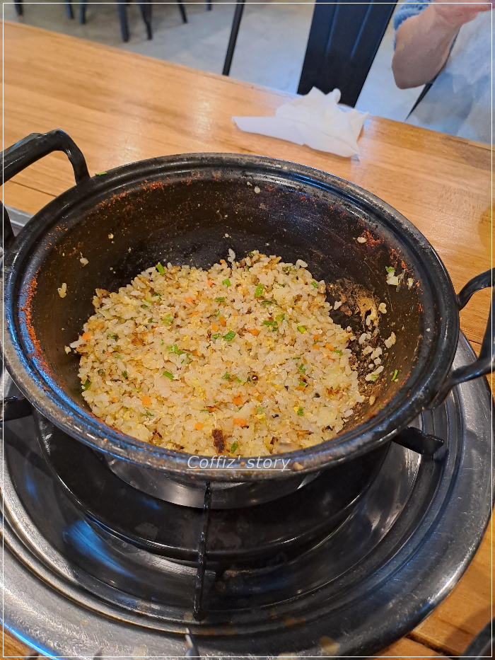 배가 불러서 칼국수 면은 패스했지만 그래도 이 볶음밥 만은 빼놓을 수가 없습니다. 이집 볶음밥은 특이하게
