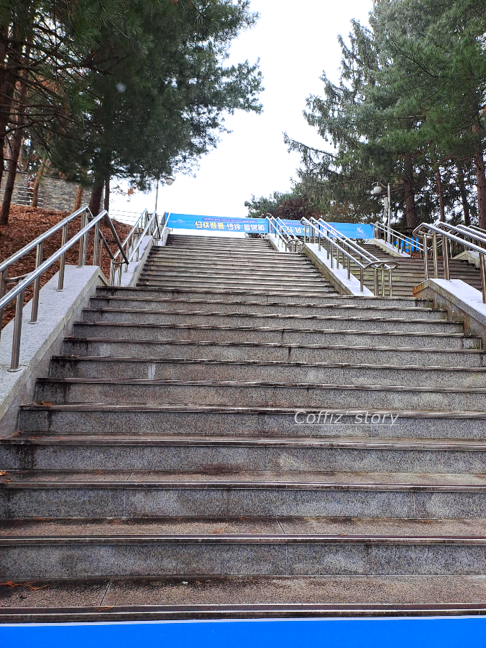댐으로 올라가려면 계단을 올라야 하는데 날씨로 인해 입구를 막아 놓았기에 옆에 데크가 깔린길을 돌아서 올라갑니다. 저는 평소에도 계단대신 이길을 이용하는데 짧지만 나무숲에 둘러 싸인 길이라 운치가 있거든요.