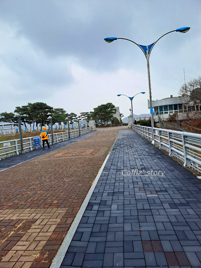 저 아래 산책로까지 내려가는 계단이 있지만 역시나 막아놔서 오른쪽 끝으로 가면 선착장 같은 곳이 있는데 그 옆으로 아래로 내려가는 길이 있습니다. 천천히 걸어서 물보며 산책하는 맛도 좋네요.