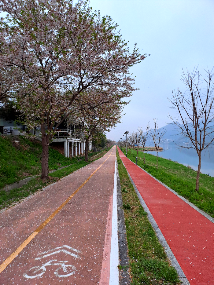 호텔 뒤편으로는 북한강 따라 산책로와 자전거 도로가 이어져 있어 이튿날 비 오는 아침에도 잠깐 산책하며 힐링할 수 있었어요.