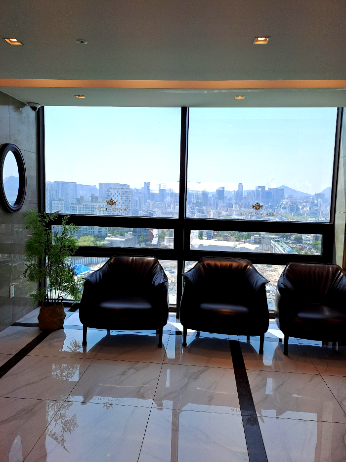 뻥뷰가 아닌 이런 뷰를 보게 됩니다. 마치 공장 같은 느낌의 답답함 .......... 22층이라 시원한 뷰를 기대했는데 너무 아쉬웠던 순간이었죠. ㅎㅎ 체크인 할때 직원분 얘기로는 시티뷰는 추가금을 내야한다고 했던 것 같아요.